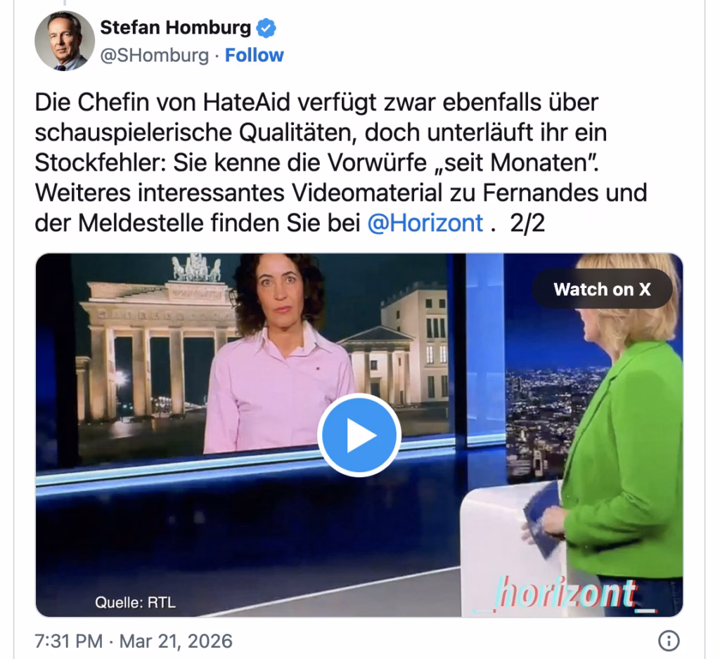 Die zeitliche Abfolge legt eine strategische Dimension nahe. Der Fall wird öffentlich, Aktivisten mobilisieren, Medien verstärken, Politik reagiert mit Gesetzesinitiativen. Parallel dazu werden Forderungen nach Klarnamenpflicht und Digital ID erneuert. Organisationen wie HateAid spielen dabei eine zentrale Rolle. Sie sind nach eigenen Angaben bereits Monate vor der öffentlichen Eskalation involviert.