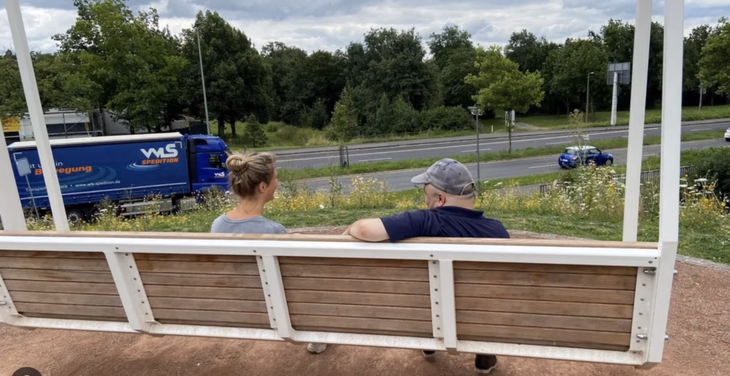 »In Kassel« wurde ein Park für 1,3 Millionen Euro aufgehübscht, inklusive einer Hollywoodschaukel für 16.000 Euro, die auf eine Bundesstraße blickt.