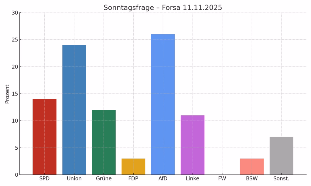 »Quelle: Dawum | Forsa« Grafik KI-generiert