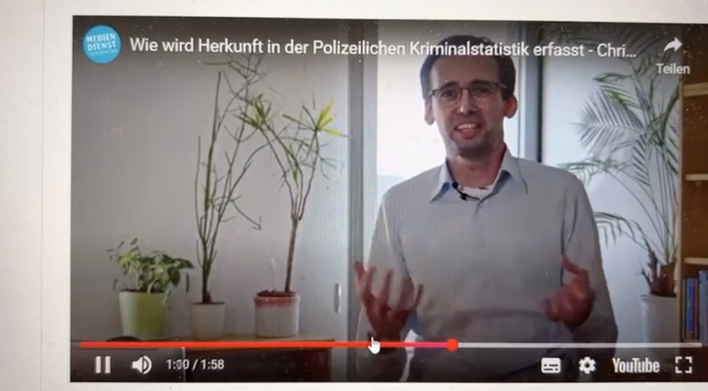 Wie die »Initiative Transparente Demokratie« weiter ausführt, behauptet ein Schulungsvideo zur Polizeilichen Kriminalstatistik des »Mediendienstes Integration«, ausländische Tatverdächtige umfassen eine Menge Verdächtiger, die gar nicht in Deutschland leben, wie Touristen, was die Kriminalitätsrate bei ansässigen Ausländern überschätze. Polizeiliche Erkenntnisse zu einer Verzerrung durch Touristen fehlen jedoch vollständig. Der Anteil von Ausländern in der Kriminalstatistik liegt bei 37 Prozent, weit über ihrem Bevölkerungsanteil von 14 Prozent, doch Kriminologe Christian Walburg erklärt das kurzerhand mit nicht ansässigen Kriminellen, inklusive Touristen.