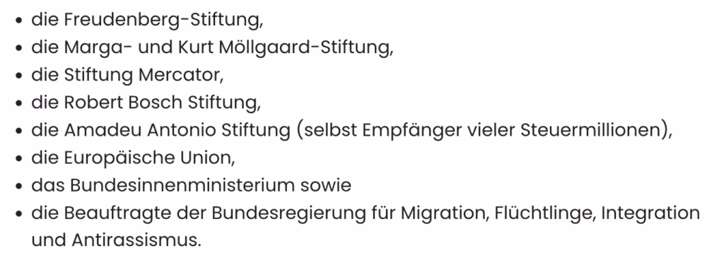 Der Mediendienst schöpft aus üppigen Töpfen: Rund 3 Millionen Euro von der Integrationsbeauftragten, 280.642 Euro vom Bundesinnenministerium, 909.972 Euro aus dem EU-Migrationsfonds AMIF, plus private Stiftungen wie Freudenberg, Marga- und Kurt Möllgaard, Mercator, Robert Bosch und Amadeu Antonio.