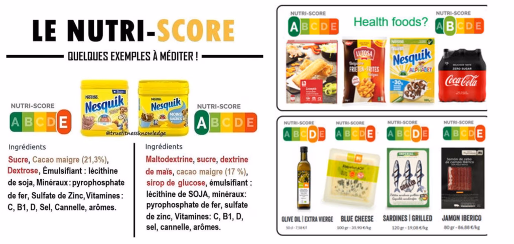 Ein Nutri-Score wird eingeführt, der die Nährwertqualität von Lebensmitteln von A (grün, günstig) bis E (rot, ungünstig) einteilt. Vergeben wird dieser Score aber eindeutig nach politischer Agenda, nicht nach Nährwert. ChatGPT erklärt zu Carpaccio vom Rind: „Es zeichnet sich durch einen hohen Eiweißgehalt und wertvolle Mikronährstoffe aus.“ [Abfrage 21.10.2025] Im Supermarkt erhält beispielsweise „BLACK ANGUS RINDERCARPACCIO“ von Aldi Süd den orangefarbenen Score D. Am anderen Ende des Spektrums bekommen moderne „Frühstückscerealien“ wie Cornflakes häufig den Score A. Das suggeriert ein gesundes Frühstück. Während ein klassisches Müsli allerdings reich an Ballaststoffen, Vitaminen und Mineralstoffen ist, liegt der Zuckergehalt bei den Cerealien deutlich höher, was zu hochschießenden Insulinantworten führt, und durch die starke Verarbeitung sind auch die natürlichen Nährstoffe fast gänzlich verloren. Nicht umsonst sprach man bei der Einführung dieser „Fast-Frühstück“-Produkte scherzhaft davon, die Packung enthalte wahrscheinlich mehr Nährwert als der Inhalt.