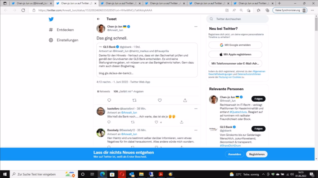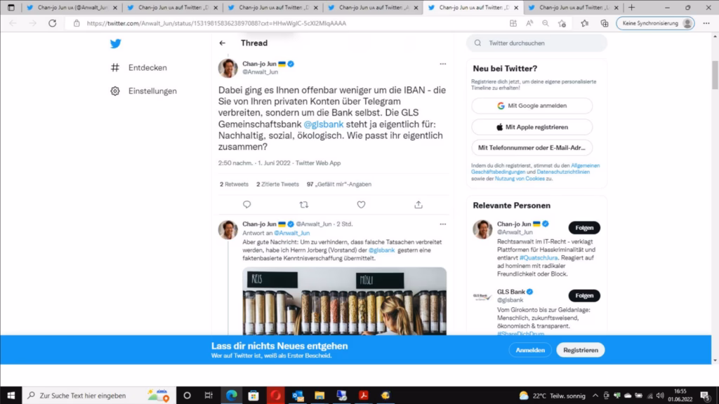 Ihr nachfolgender X-Post suggeriert, dass Sie nichts Wesentliches mit der Kündigung meines GLS-Kanzleikontos zu tun hatten. Anbei eine kleine Erinnerungshilfe.
