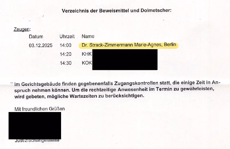 Auch die FDP-Kriegstreiberin Strack-Zimmermann muss am 3. Dezember 2025 auf unseren Beweisantrag hin in einer Berufungsverhandlung vor einem Landgericht als Zeugin erscheinen.