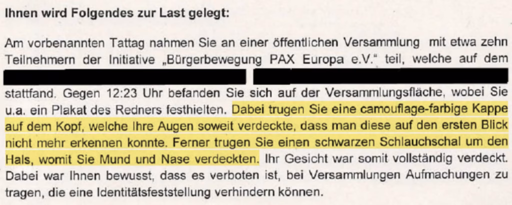 Die Vermummung erfolgte offenkundig nicht, um sich einer Strafverfolgung zu entziehen, sondern nur deshalb, um familiäre Nachteile zu vermeiden. Unser Mandant hat letztlich eine Geldauflage von 300 € akzeptiert, um keine beruflichen Konsequenzen durch eine Verurteilung zu riskieren.